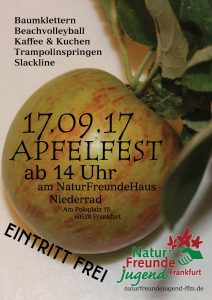 Am 17.09. ist wieder unser großes Apfelfest am Naturfreundehaus Niederrad.